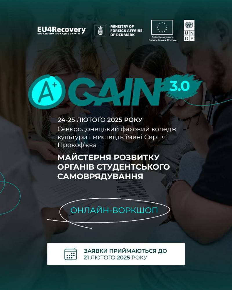 Наші студенти ООС пройдуть навчання в онлайн-форматі у "Майстерні розвитку органів студентського самоврядування "aGAIN 3.0" 24-25 лютого 2025 року!!!