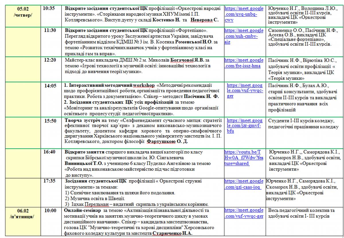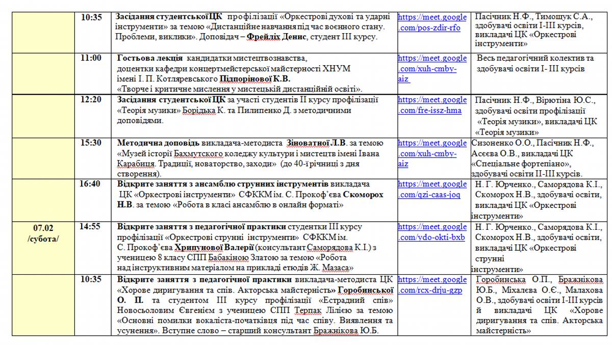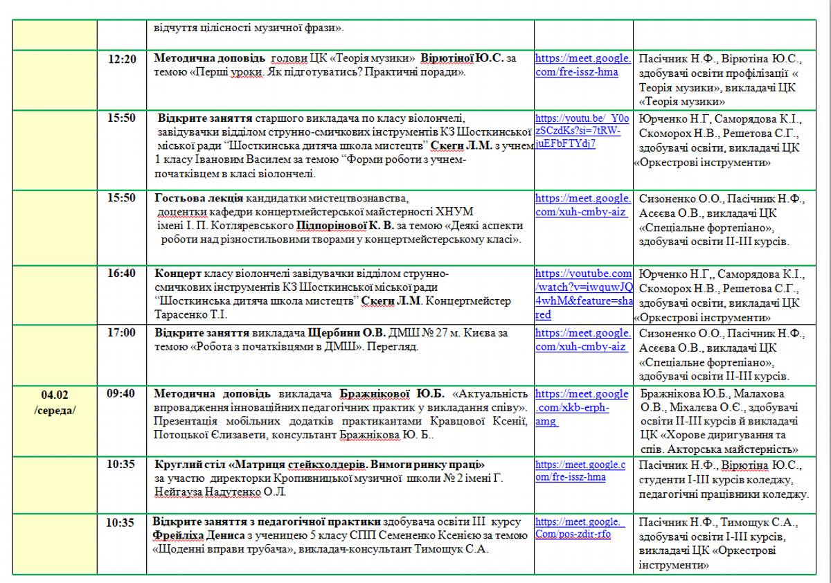 Розклад занять