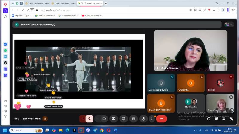 В рамках роботи динамічного освітнього осередку (локації) «Університет музичної культури» при Раді директорів фахової передвищої освіти Луганської області 20 березня 2026 року коледжем проведено музично-літературний проєкт «Шевченко: як поезія Кобзаря стала саундтреком сучасної України», присвячений дням пам’яті Тараса Шевченка для студентської молоді Луганщини. До онлайн-заходу долучилося 79 здобувачів освіти із 15 закладів фахової передвищої освіти Луганської області.
