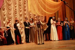 Пришедшие на концерт, словно по волшебству, попали на …бал. Да, настоящий новогодний бал в лучших традициях классической оперы. На сцене чинно прогуливались дамы с кавалерами, ведя непринужденную беседу, грациозно вальсировали пары и, конечно же, звучали фрагменты из полюбившихся оперетт, мюзиклов прошлого и современности.