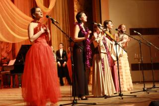 Своеобразным украшением концерта, без сомнения, стали разнообразные ансамблевые номера. Это - мужской квартет, женский ансамбль III курса и женский ансамбль студенток-выпускниц.