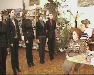 Студенты нашего училища не оставили Екатерину Ивановну без подарка. Маргарита Чернышева прочитала ветерану войны стихотворение собственного сочинения. Студенты духового отдела исполнили мелодии того времени. Напоследок вокальный ансамбль исполнил попурри на тему военных песен с концертмейстером Губановой Л.И.