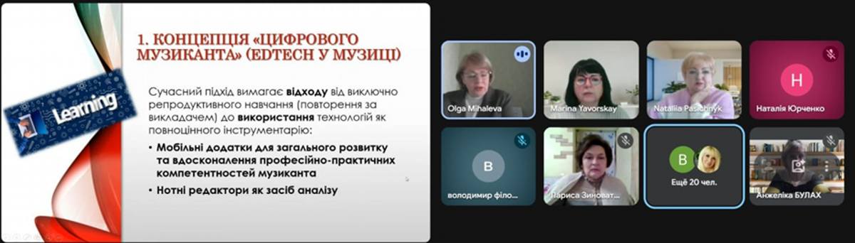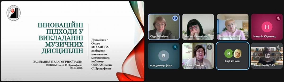 Зокрема, на засіданні обговорено впровадження інноваційних підходів у викладанні музичних дисциплін, що спрямовані на підвищення якості підготовки здобувачів освіти та розвиток їхнього творчого потенціалу. Завідувачка методичного кабінету Ольга МІХАЛЄВА відзначила досягнення колективу з питань впровадження новітніх педагогічних стратегій для підвищення ефективності навчання та мотивації здобувачів освіти, проаналізувала сучасні підходи до даного питання.. Проблемне питання було присвячене трансформації музичної освіти в умовах цифровізації та нових суспільних запитів.