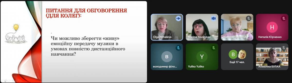 Зокрема, на засіданні обговорено впровадження інноваційних підходів у викладанні музичних дисциплін, що спрямовані на підвищення якості підготовки здобувачів освіти та розвиток їхнього творчого потенціалу. Завідувачка методичного кабінету Ольга МІХАЛЄВА відзначила досягнення колективу з питань впровадження новітніх педагогічних стратегій для підвищення ефективності навчання та мотивації здобувачів освіти, проаналізувала сучасні підходи до даного питання.. Проблемне питання було присвячене трансформації музичної освіти в умовах цифровізації та нових суспільних запитів.